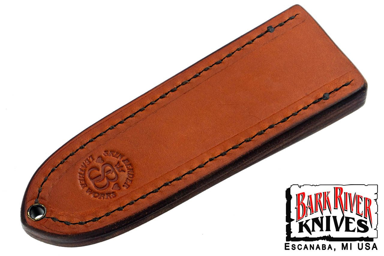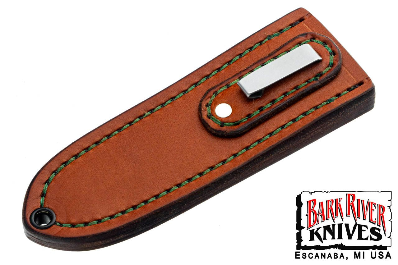 バークリバー スキンベンダー EDC ポケット シース - ブラウン レザー - フォレスト グリーン スティッチング